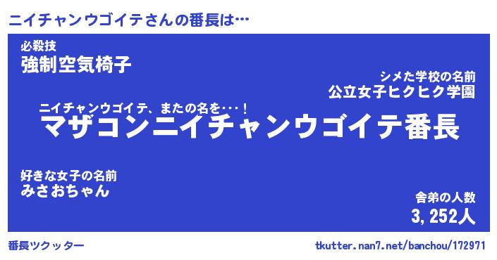 | ポケモン風あだ名 | 『ニイチュウ』『ニイチダネ』 |