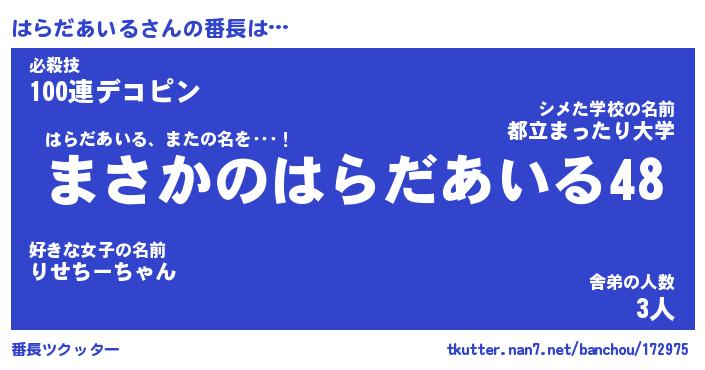 | 猫の名前『はらだあいるにゃん』性別『♂』 |