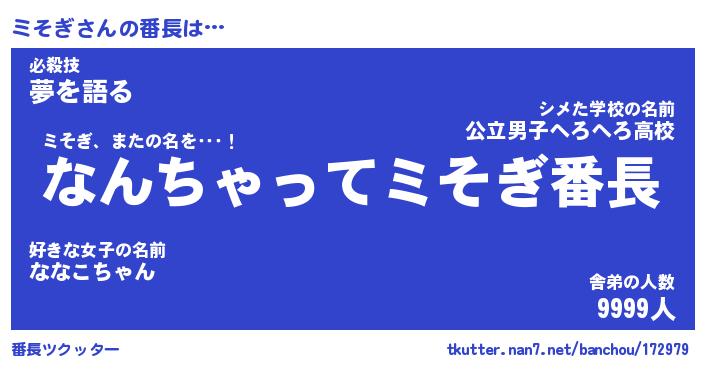 | ポケモン風あだ名 | 『ミソチュウ』『ミソギダネ』 |