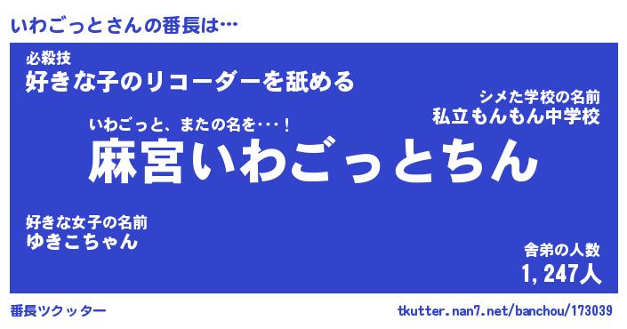 | ピコ太郎風あだ名 | 『イコ三郎』『ピイ六郎』『イワ史郎』 |