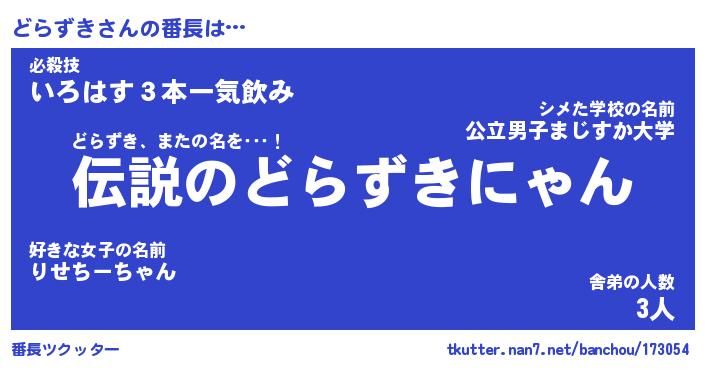| 肩書あだ名 | 『どらずき御曹司』『どらずき国家主席』 |