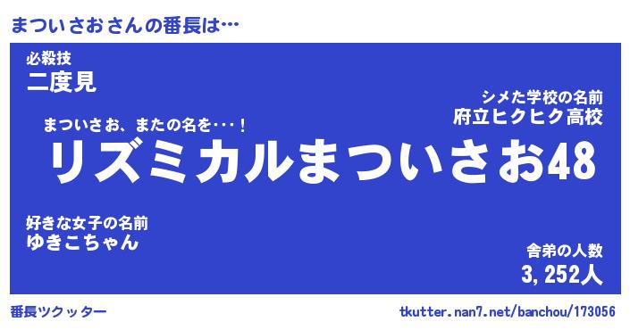 | ファンタジー風あだ名 | 『マツフェル』『エターナルマツイサオー』 |