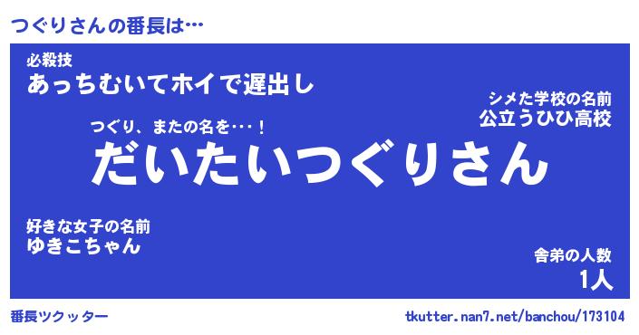 | ヒーロー風カッコイイあだ名 | 『スーパーツグリ』『ウルトラつぐりマン』 |