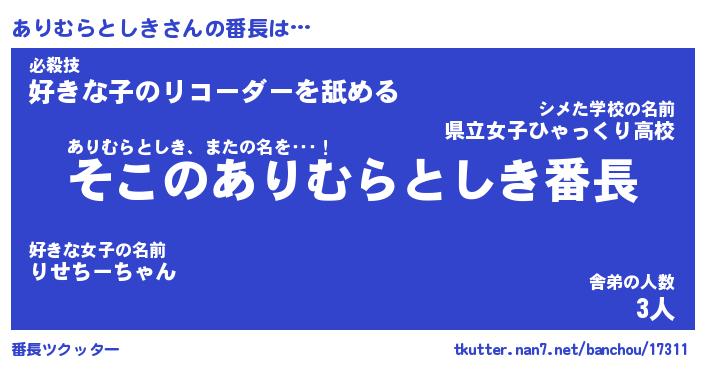 | 意味不明あだ名 | 『ペロリンありむらとしき』 |