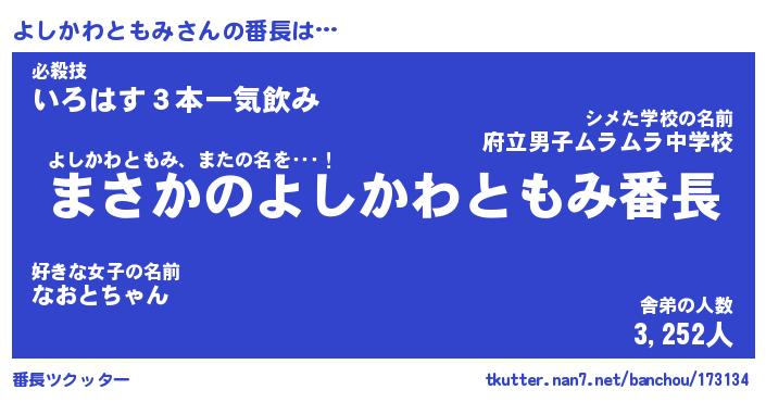 | ポケモン風あだ名 | 『ヨシチュウ』『ヨシカダネ』 |