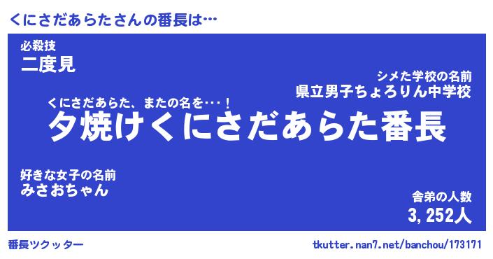 | 伝説のあだ名 | 『封印されしスナイパーくにさだあらた』 |