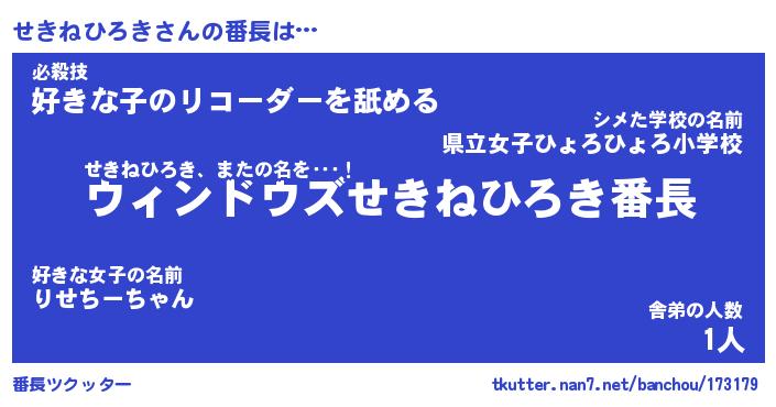 | 男性向けラノベタイトル風あだ名 | 『せきねひろきの憂鬱』 |