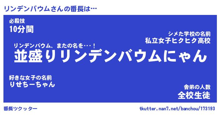 | 意味不明あだ名 | 『ペロリンリンデンバウム』 |