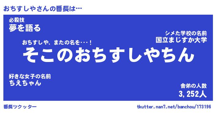 | 男性向けラノベタイトル風あだ名 | 『おちすしやの憂鬱』 |