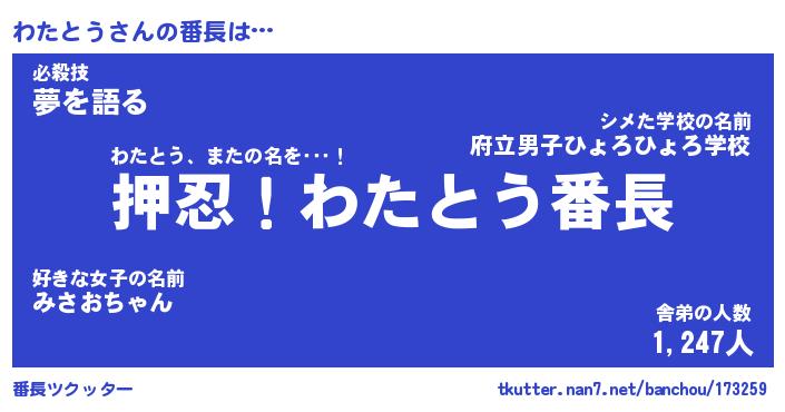 | ヒーロー風カッコイイあだ名 | 『スーパーワタトウ』『銀牙騎士ワタ』 |
