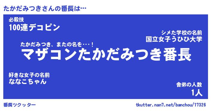 | ヘコむあだ名 | 『たかっふぃ~』『つくし』『たかを』 |