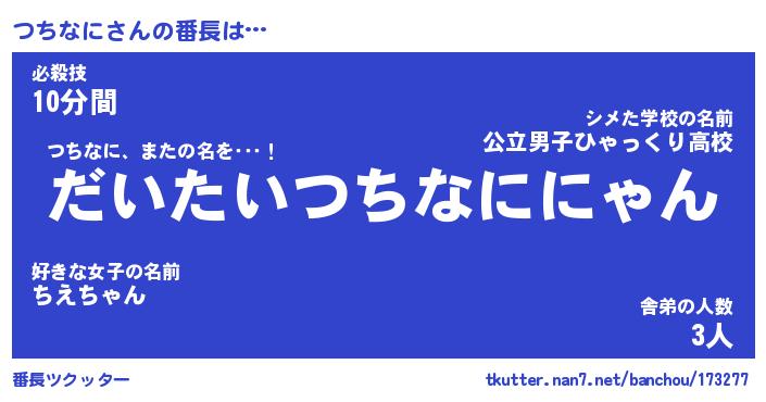 | ヒーロー風カッコイイあだ名 | 『スーパーツチナニ』『魔戒騎士ツチ』 |