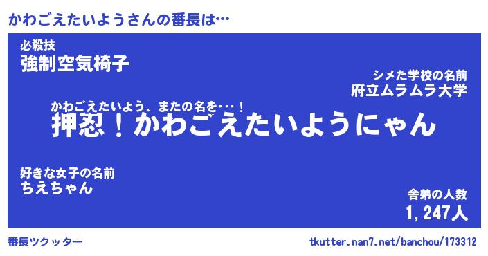 | ツイッター | かわごえたいようさんのツイッターID『fukuyoka_nyan』 |