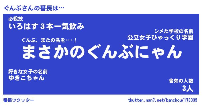 | 意味不明あだ名 | 『ペロリンぐんぶ』『ぐんぶフォーエバー』 |