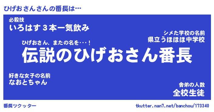 | ピコ太郎風あだ名 | 『ヒコ史郎』『ピヒ三郎』『ヒゲ十郎』 |
