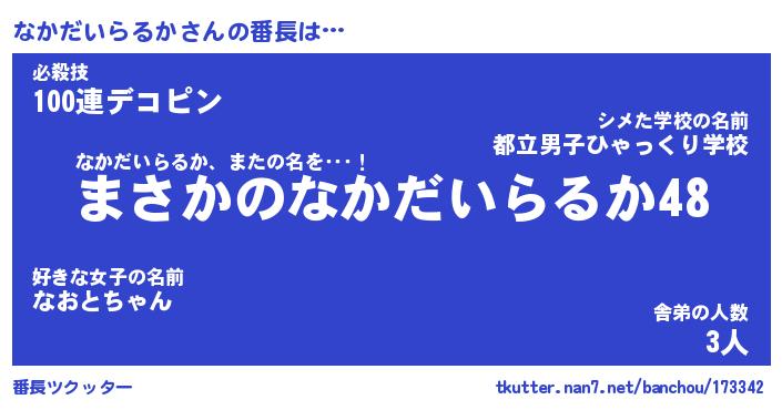 | 伝説のあだ名 | 『伝説のスナイパーなかだいらるか』 |
