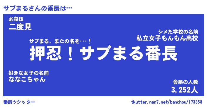 | 意味不明あだ名 | 『ペロリンサブまる』『永久保存サブまる』 |