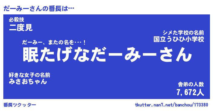 | 肩書あだ名 | 『だーみー店長』『だーみー総理大臣』 |
