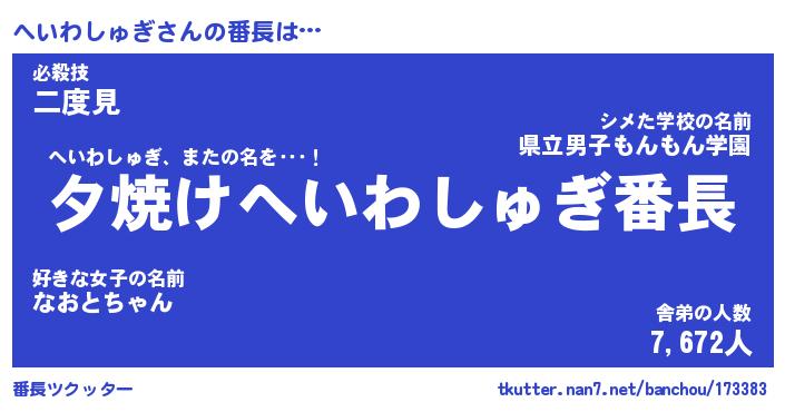 | ポケモン風あだ名 | 『ヘイチュウ』『ヘイワダネ』 |