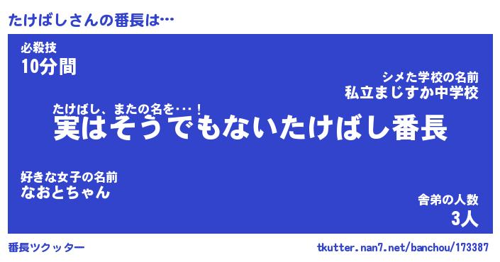 | ファンタジー風あだ名 | 『タケフェル』『エターナルタケバシー』 |
