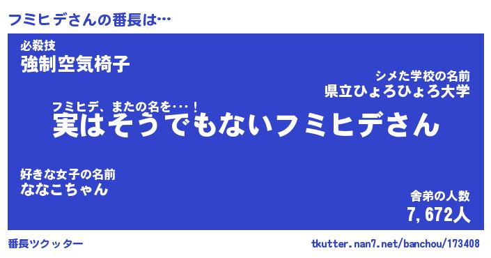 | ポケモン風あだ名 | 『フミチュウ』『フミヒダネ』 |
