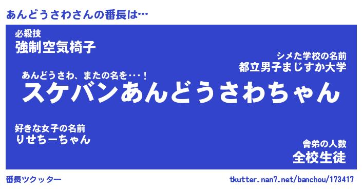 | ヒーロー風カッコイイあだ名 | 『スーパーアンドウサワ』『暗黒騎士アン』 |