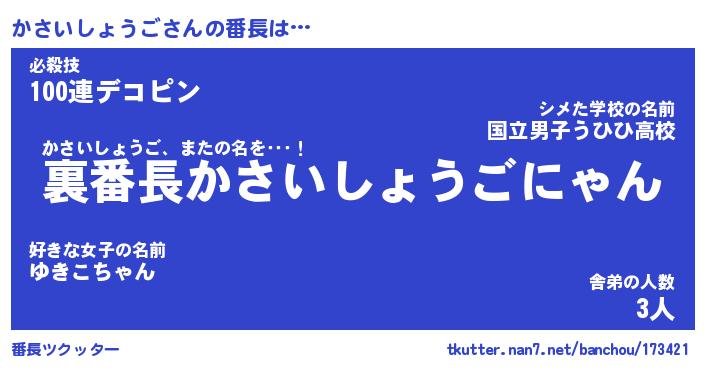 | ヒーロー風カッコイイあだ名 | 『スーパーカサイショウゴ』 |