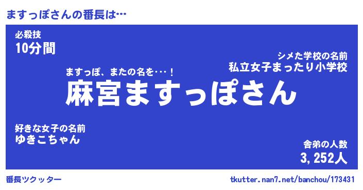 | ピコ太郎風あだ名 | 『マコ四郎』『ピマ五郎』『マス一郎』 |