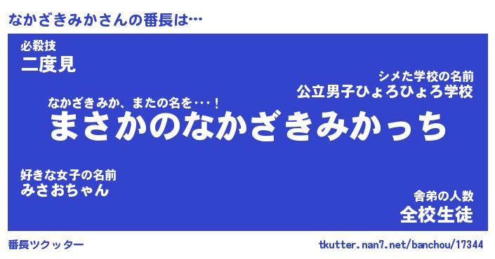 | 伝説のあだ名 | 『伝説のスナイパーなかざきみか』 |