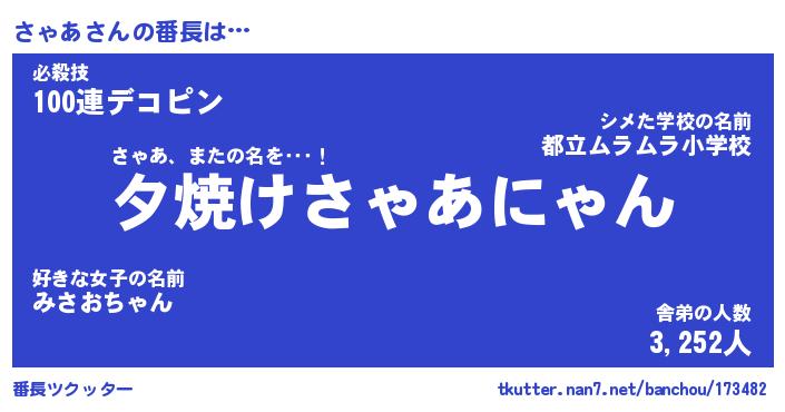 | 2回繰り返すあだ名 | 『さゃさゃ』『ささゃゃ』『ぎしぎし』 |