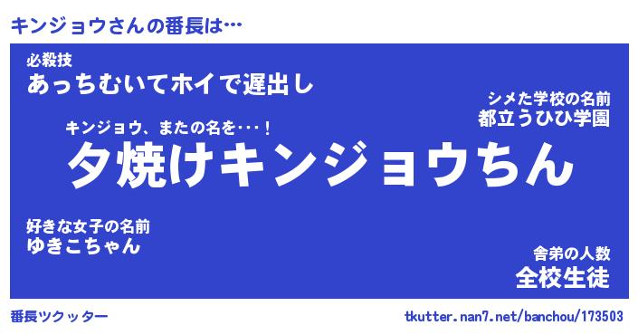 | ヒーロー風カッコイイあだ名 | 『スーパーキンジョウ』『暗黒騎士キン』 |