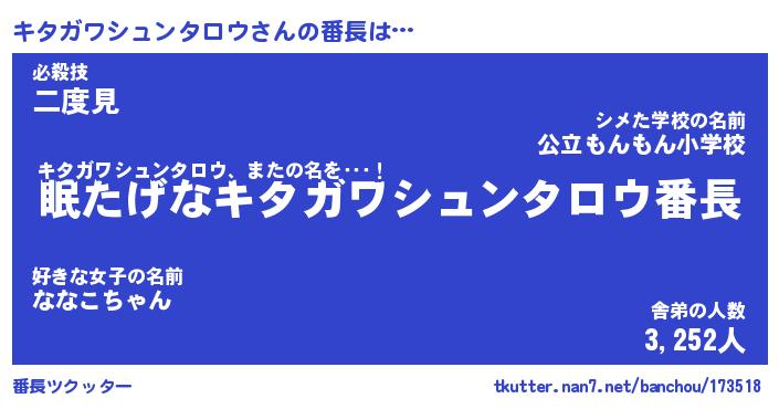 | 意味不明あだ名 | 『ペロリンキタガワシュンタロウ』 |