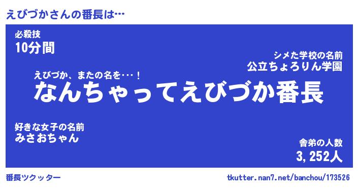 | 肩書あだ名 | 『えびづかCEO』『えびづか総理大臣』 |