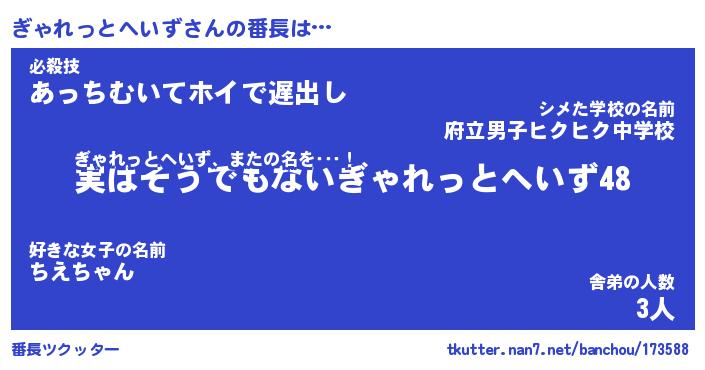 | 伝説のあだ名 | 『封印されしスナイパーぎゃれっとへいず』 |