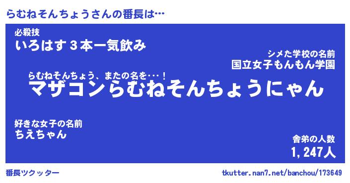 | ヒーロー風カッコイイあだ名 | 『スーパーラムネソンチョウ』 |
