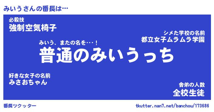 | ヒーロー風カッコイイあだ名 | 『スーパーミイウ』『ウルトラみいうマン』 |