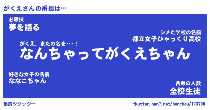 | 意味不明あだ名 | 『ペロリンがくえ』『がくえフォーエバー』 |