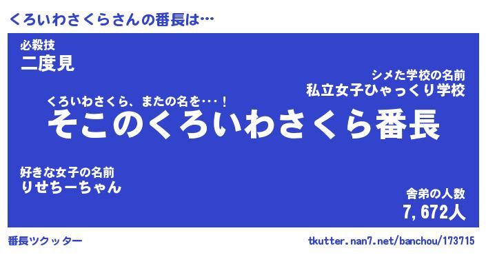| 男性向けラノベタイトル風あだ名 | 『くろいわさくらの憂鬱』 |