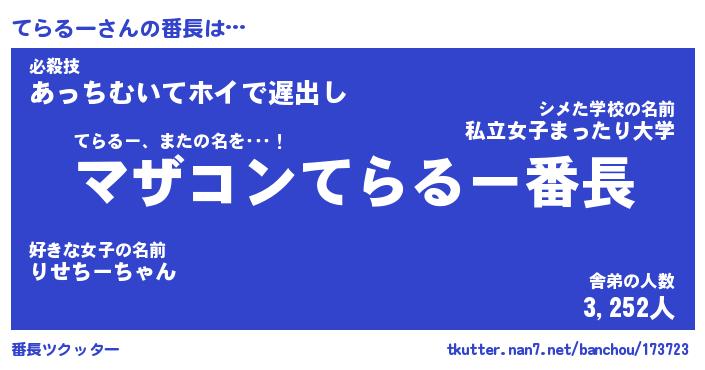 | 肩書あだ名 | 『てらるーCEO』『てらるー国家主席』 |