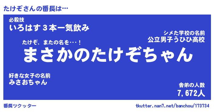 | ヒーロー風カッコイイあだ名 | 『スーパータケゾ』『ウルトラたけぞマン』 |