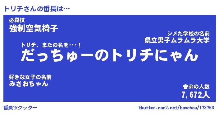 | ヒーロー風カッコイイあだ名 | 『スーパートリチ』『ウルトラトリチマン』 |