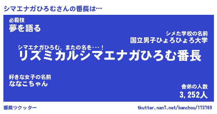 | 意味不明あだ名 | 『ペロリンシマエナガひろむ』 |