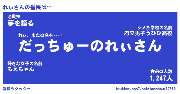 | 伝説のあだ名 | 『伝説の竜騎士れぃ』『最古の陰陽師れぃ』 |