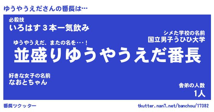 | 肩書あだ名 | 『ゆうやうえだ社長』『ゆうやうえだ班長』 |