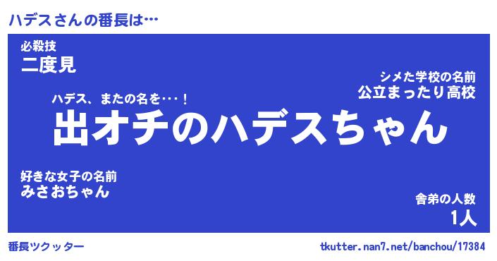 | 2回繰り返すあだ名 | 『ハデハデ』『ハハデデ』『べとべと』 |