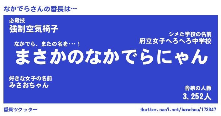 | 意味不明あだ名 | 『ペロリンなかでら』『永久保存なかでら』 |