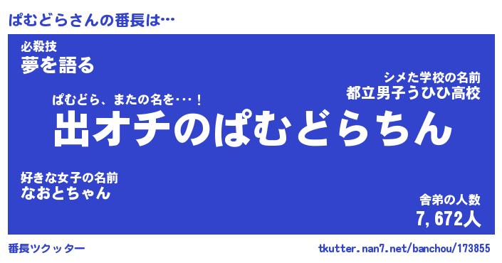 | 意味不明あだ名 | 『ペロリンぱむどら』『永久保存ぱむどら』 |