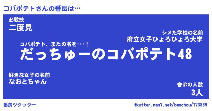 | 男性向けラノベタイトル風あだ名 | 『コバポテトの憂鬱』 |