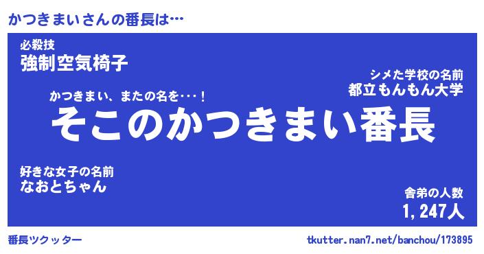 | ファンタジー風あだ名 | 『カツフェル』『エターナルカツキマイー』 |