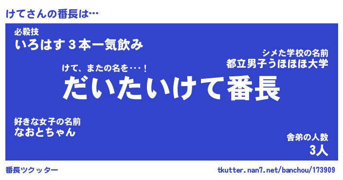 | ヒーロー風カッコイイあだ名 | 『スーパーケテ』『ウルトラけてマン』 |